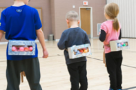 Bu oyun için katılım sağlayacak kişi sayısı kadar kâğıt mendil kutusu, pinpon topları ve koli bandına ihtiyacımız var. Peçete kutularının içini pinpon toplarıyla dolduralım ve görselde olduğu gibi kutuları bir bant yardımıyla belimize yerleştirelim. Herkes hazır olduğunda müziği açıp dansa başlıyoruz. Bakalım belindeki topları dans ederek kim önce bitirecek? İyi eğlenceler. Oyunun bağlantısı: https://tr.pinterest.com/pin/821344050785760506/