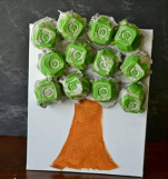 Şimdi yumurta kutusundan ağaç yapma zamanı. Bunun için yumurta kutusuna, makasa, sulu boyalarımıza, yapıştırıcı ve pastel boyalarımıza ve kâğıdaihtiyacımız var. Öncelikle kâğıdımızın alt kısmına ağaç gövdemizi çizip boyayalım. Sonra da yumurta kutusunun her bir yuvarlağını keserek ayıralım -bunu yapmak biraz zor olabilir, bu sebeple yetişkin yardımı gerekebilir-. Sonra parçaları yandaki örnekte olduğu gibi yapıştırıp boyayalım veeee ağacımız hazır….
